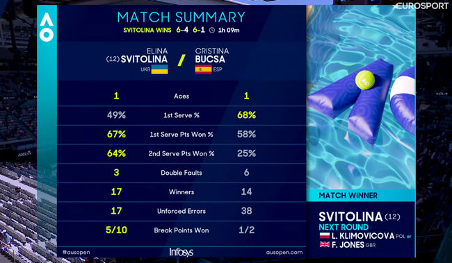 Australian Open. Світоліна здобула 30-ту перемогу в основній сітці турніру і вийшла до другого колаНовини