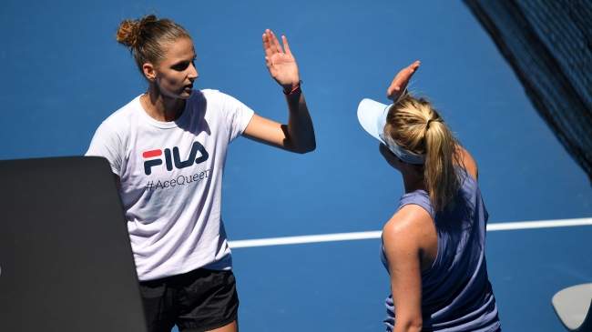 Elina Svitolina & Karolina Pliskova at practice in Melbourne #AusOpen pic.twitter.com/6bE863NgsH
