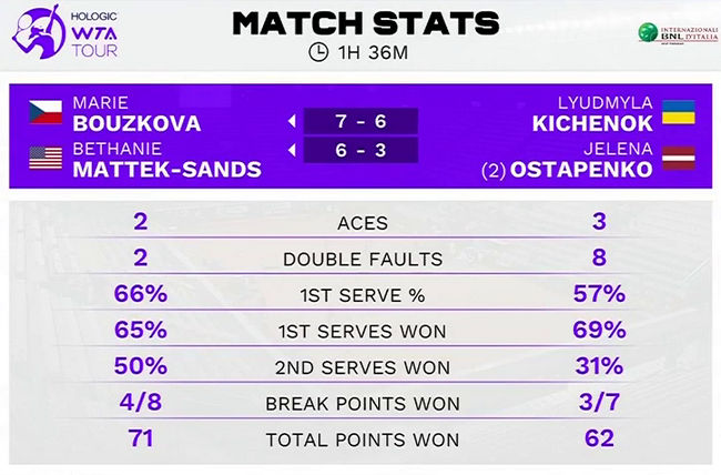 Нагадаємо, Боузкова і Маттек-Сендс у попередньому раунді обіграли Надію Кіченок і Кімберлі Ціммерманн.