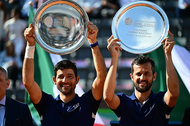 Рим. Лідери парного рейтингу стали чемпіонами «Мастерса», відігравши матчбол на вирішальному супер-тай-брейкуНовини![]() Internazionali BNL d'Italia - ATP Masters 1000 Рим, Італія • 7-18 травня • ґрунт • €9,645,265 Сітка турніру: парний розряд Сальвадорець Марсело Аревало і хорват Мате Павич завоювали титул на «Мастерсі» в Римі, перемігши у фіналі французький дует Садіо Думбія/Фаб'єн Ребуль - 6:4, 6:7 (6), 13-11. Лідери посіву Аревало/Павич, які торік поступилися у фіналі цих змагань, відіграли матчбол за рахунку 9-10 на чемпіонському тай-брейку. Аревало і Павич, які цього сезону також виграли титули на турнірах АТР 1000 в Індіан-Веллс і Маямі, мають тепер 30 перемог за 7 поразок у 2025 році. Шлях до титулу: R1: Джуліан Кеш/Лукас Міедлер (Велика Британія/Австрія) 6:1, 6:4 R2: Сандер Жилле/Лукаш Зелінський (Бельгія/Польща) 7:5, 4:6, 10-2 QF: Крістіан Харрісон/Еван Кінг (США, 7) 7:5, 6:4 SF: Джо Солсбері/Ніл Скупскі (Велика Британія) 7:6(2), 6:1 FR: Садіо Думбія/Фаб'єн Ребуль (Франція) 6:4, 6:7(6), 13-11 Марсело Аревало і Мате Павич тепер мають 7 загальних титулів, включно з 4 «Мастерсами». Мате Павич завоював свій 42-й титул у парному розряді, з яких 8 - АТР 1000. Аревало має 16 парних титулів, включно з 5 АТР 1000. Тенісисти продовжать очолювати парний рейтинг АТР, випереджаючи найближчих переслідувачів більш ніж на 2000 очок. |