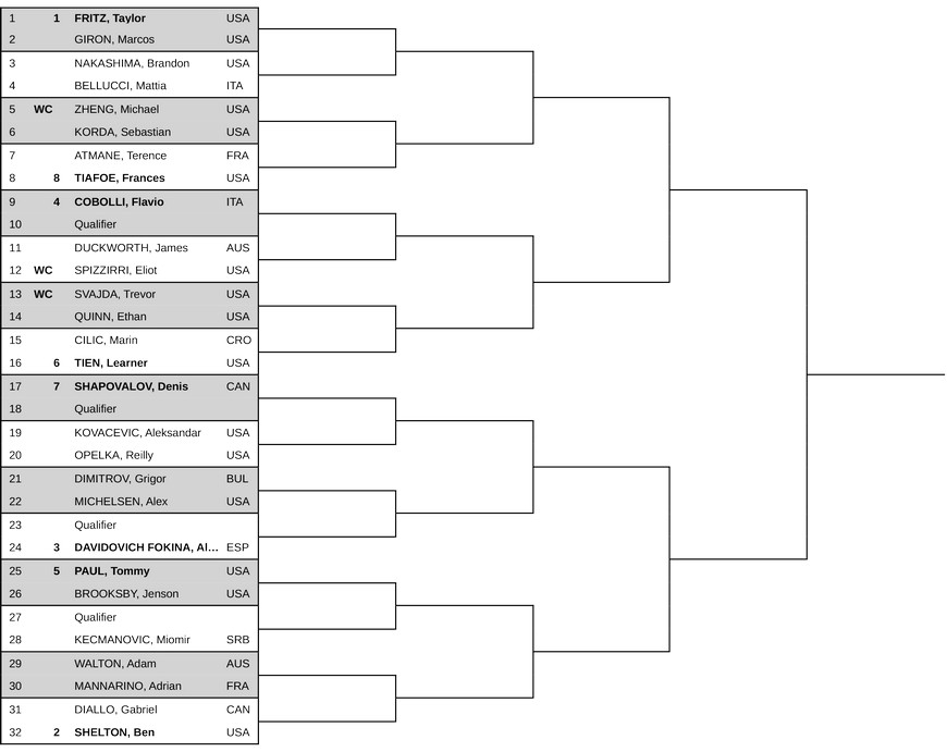 Результати жеребкування на турнірі ATP 500 у США![]() Dallas Open - ATP 500 Даллас, США - 9-15 лютого - хард (зал) - $2,833,335 Чинний чемпіон: Денис Шаповалов (Канада) Сітки турніру: кваліфікація - одиночний розряд - парний розряд • Dallas Open - один із 10 турнірів ATP-туру, що проводяться в США, і єдині змагання, що відбуваються в приміщенні. Ігри турніру проводяться на кортах комплексу Styslinger/Altec Tennis Complex. У цьому сезоні відбудеться п'ятий розіграш Dallas Open. Турнір спочатку мав категорію АТР 250, але торік був підвищений до АТР 500. • Офіційний м'яч турніру - Dunlop ATP. • Ігри основної сітки стартують у понеділок 9 лютого. Фінальні матчі в одиночному і парному розрядах відбудуться в неділю - 15 лютого. • Минулого року одиночний титул у Далласі виграв канадець Денис Шаповалов, а в парі чемпіонами стали американці Крістіан Гаррісон і Еван Кінг. • Поки що жодному тенісистові не вдавалося виграти титул у Далласі двічі. • Три переможці минулих років зіграють у Далласі цього сезону: Денис Шаповалов (2025), Томмі Пол (2024) і Райлі Опелка (2022). Одиночний розряд Wild card від організаторів отримали: Майкл Чжен (США) Елліот Спіцціррі (США) Тревор Свайда (США) ТОП-8 сіяних та їхні суперники 1. Тейлор Фрітц (США) - Маркос Гірон (США) 2. Бен Шелтон (США) - Габріель Діалло (Канада) 3. Алехандро Давидович Фокіна (Іспанія) - «кваліфаєр» 4. Флавіо Коболлі (Італія) - «кваліфаєр» 5. Томмі Пол (США) - Дженсон Бруксбі (США) 6. Лернер Тьєн (США) - Марін Чилич (Хорватія) 7. Денис Шаповалов (Канада) - «кваліфаєр» 8. Френсіс Тіафо (США) - Теренс Атман (Франція) Очки та призові: R1: 0 очок / $22,095 R2: 50 очок / $41,435 QF: 100 очок / $77,625 SF: 200 очок / $151,935 FR: 330 очок / $285,095 W: 500 очок / $529,945 ![]() Парний розряд Wild card від організаторів отримали: Дункан Чан/Косме Роллан де Равель (Канада/Франція) Григор Димитров/Георгі Георгієв (Болгарія) ТОП-4 сіяних та їхні суперники 1. Марсель Гранольєрс/Орасіо Себальос (Іспанія/Аргентина) - Остін Країчек/Нікола Мектич (США/Хорватія) 2. Крістіан Харрісон/Ніл Скупскі (США/Великобританія) - Флавіо Коболлі/Алехандро Давидович Фокіна (Італія/Іспанія) 3. Садіо Думбія/Фаб'єн Ребуль (Франція) - «кваліфаєри» 4. Роберт Кеш/Джей Джей Трейсі (США) - Еван Кінг/Джон Пірс (США/Австралія) Очки та призові: R1: 0 очок / $12,150 QF: 90 очок / $23,490 SF: 180 очок / $46,960 FR: 300 очок / $92,820 W: 500 очок / $174,050