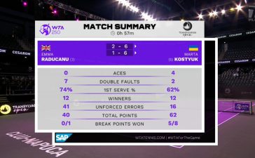 Огляд матчу Марта Костюк – Емма Радукану на турнірі в Румунії (ВІДЕО)